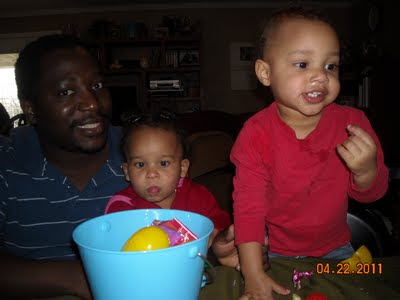 We went to two Easter Egg hunts, had dinner at Grandpa and Grandma's house, the Easter Bunny came and we had dinner at home on Easter Sunday with Great Grandma. Busy weekend!!